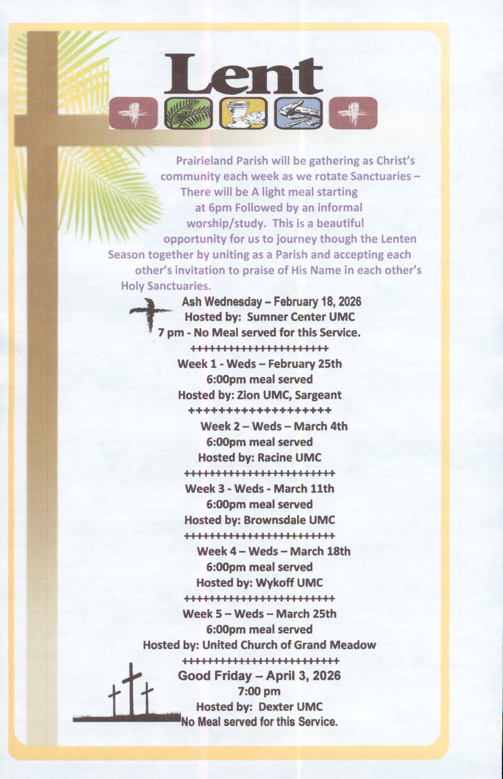If you have any questions please email or call Pastor Bridget at bridget@countrywidecarriers.com or 507-438-1352.